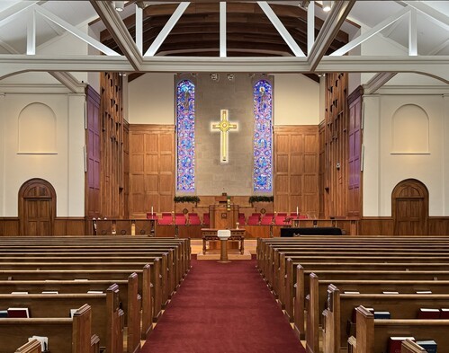 In 1956, during the pastorate of Dr. James Sprunt, the sanctuary was remodeled in its present style with a remodeling of the Chancel.